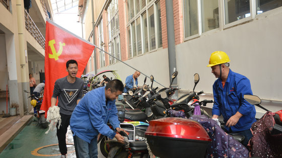 11日15時,模鍛廠黨支部77名黨員準(zhǔn)時集合到模鍛廠2#3#職工休息樓前。隨即,支部李蓬川書記一令下,全體黨員立即行動起來,維修的、浸水的,擦灰塵的,擦干的,加油的……責(zé)任明確、分工明細(xì),協(xié)作推進(jìn),迅速形成了火熱的服務(wù)場面。經(jīng)過全體黨員近2個小時的熱情服務(wù),共計為職工擦洗自行車、電瓶車80余輛,維修自行車、電瓶車10余輛,用實際行動表達(dá)了模鍛廠黨組織為職工謀幸福的初心。(唐世兵)